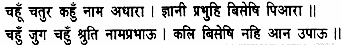 All these four types of Rama-worshippers rely upon the Name, but the man of initiative wisdom is dearest to the Lord; in all the four ages and the four Vedas his name is mighty, but mightiest of all in this Kaliyuga, in which there is no other means of salvation.
