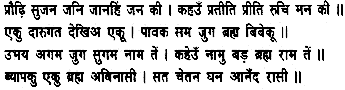 Let not the good take this as an exaggeration on my part; for I say it confidently and with sincere devotion. The two forms of the Absolute may be known like the two kinds of fire; the one within the wood, the other visible. Both forms are hard to understand, but both are made known by the Name; and therefore I declare that the Name is greater than either the Absolute or Rama Brahma is all-pervading, one, indestructible, the very essence of Truth, Consciousness and Bliss.