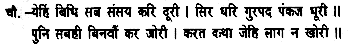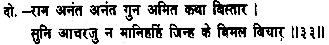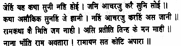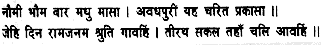 Reverently bowing my head to Shiva, I now proceed to recount the sacred tale of Rama’s virtues, laying my head on the feet of Hari I commence this story in the Samvat year 1631 (1574 A.D.)