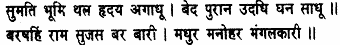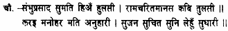 By the grace of Shambhu a bright idea inspire the mind of Tulasidasa, which made him the poet of the Ramacharitamanasa. The author has made it as charming as his wit is able; yet listen to it sympathetically. O noble souls, and correct it.
