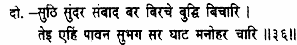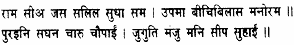 The glory of Rama and Sita is its ambrosial flood; the similes are the soul-ravishing sport of its ripples. The beautiful chaupais represent the thick growth of lotus leaves; the various poetic devices constitute the lustrous oyster-pearls.