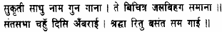 The hymns in praise of virtuous men, pious souls and of the Name of Rama – these correspond to the varied waterfowl. The saints assembled are the mango-groves hemming the lake on all sides and their piety is said to be like the vernal season.