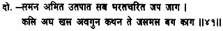 The acts of Bharata, which ward off all calamities, are like congregational prayers and sacrifices carried on at the river bank; while the references to the corruptions of the Kaliyuga and to the evil propensities of sinful men are like the filth in the water as well as the cranes and the crows living by the riverside.
