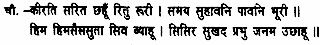 The river of Rama’s glory is beautiful in all six seasons; it is exceedingly charming and pure at all times. The wedding of Parvathi (the daughter of Himavan)with Shiva is the cold season; the festival connected with the Lord’s advent represents the delightful season of dewy days.