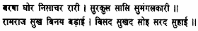 The fierce conflict with the demons is the rainy season, a veritable blessing to the gods as rain to the rice-fields; while the prosperity attending Rama’s reign, his gentle conduct and glory are the cloudless, delightful, and charming autumn.