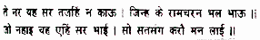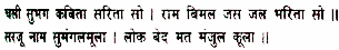 The story of the virtues of Sita, the crest-jewel of all faithful wives, is the virtue of the transparent and incomparable water, and Bharata’s amiability is its refreshing coolness, which is uniform at all times and indescribable.