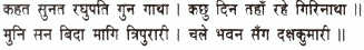 Thus narrating and hearing the tale of Raghunatha’s virtues, the lord of Kailasa (Shiva) spent some days there. Finally, bidding farewell to the sage, Shiva went home (Mount Kailasa) with Daksha’s daughter (Sati).