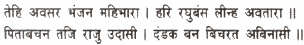 Now at that time, with a view to relieving the earth of its burdens, Hari became incarnate in the family of Raghu. Renouncing his right to the throne at the word of his father (Dasharath), the immortal Lord was wandering in the Dandaka forest as an ascetic.