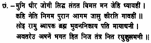 He who has incarnated himself as the jewel of the house of Raghu for the sake of his devotees is no other than the Supreme Eternal, all-pervading and ever free, Lord of all the worlds and master of Maya, whom steadfast sages, yogis (mystics) and siddhas (adepts) continually contemplate with their sinless mind and whose glory the Vedas and the Puranas and other scriptures sing, naming him ‘Not this, not this.’
