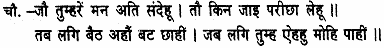 After many an anxious thought Sati assumed the form of Sita and moved ahead on the same road by which the king of men (Rama) was coming.