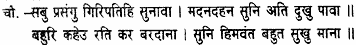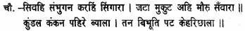 He bore the moon on his noble forehead and Ganga on the crown of his head; three eyes he had and a snake for the sacred thread. He had poison on his throat and a necklace of human skulls on his breast. In such unblest guise was arrayed the gracious home of all blessings!
