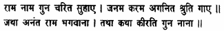 The glorious names of Rama, his virtues and acts, his lives and deeds have all been declared by the Vedas to be beyond number. As Rama, the Blessed Lord, is infinite, so are his stories, his glory and manifold virtues without end.