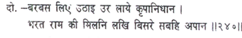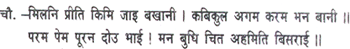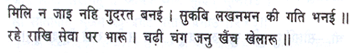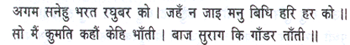Inaccessible is the affection of Bharata and Raghunatha, beyond the conception even of Brahma (the Creator), Vishnu (the Protector) and Shiva (the destroyer). How, then, can I, a dull-witted man, express it? Can an instrument strung with gandara (a species of grass) produce sweet melody?