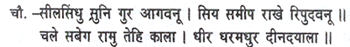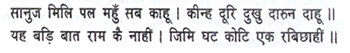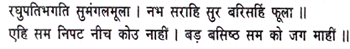 ‘Devotion to Raghunatha is the root of all choice blessings!’ Thus applauding, the gods in heaven rained down flowers. ‘There is no one so utterly vile as this man nor one so great as Vasishtha in his world;