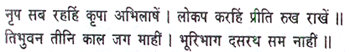 Every monarch solicited his favour, and the very guardians of the spheres cultivated his friendship and respected his wishes. No man was so blessed as Dasharath in all the three spheres of the universe, in time past, present and to come.