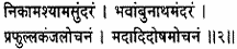 ‘I reverence you, who are so fond of your faithful followers, compassionate and gentle of disposition. I worship your lotus feet, which bestow upon the desireless your own abode in heaven.