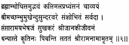 Blessed are those pious souls who unceasingly quaff the nectar of Rama’s Name, churned up from the ocean of the Vedas, cleansing the Kaliyuga of its impurities, imperishable, ever glorifying the fair and beauteous moon of blessed Shankara’s face, a remedy to heal the ills of life and death, full of blessings and the very life of Janaki!