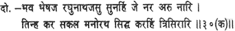 The glories of Raghubira are the remedy for all the ills of birth and death. All men and women who listen to them will have their every wish fulfilled by Trishira’s foe.