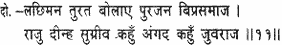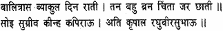 -but Raghubira, from mere natural kindliness, made Sugriva king of the monkeys – Sugriva who trembled day and night in fear of Bali, who had many a wound on his body and whose heart ever burnt with the fire of anxiety.