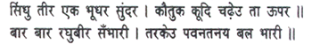 On the seashore stood a majestic hill and on to it he sprang as if in sport. Then, again and again invoking Raghubira, the Son of the Wind leapt with a mighty bound.
