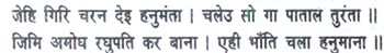 The hill on which Hanuman had planted his foot sank down at once into the nethermost world. On sped Hanuman like Raghunatha’s own unerring shaft.