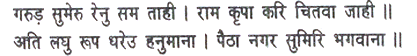 - and Mount Sumeru, O Garuda, a grain of dust for him on whom Rama sheds his glance of grace. Hanuman assumed a very tiny form and invoking Rama, entered the city.