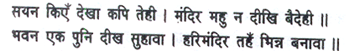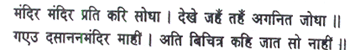 Hanuman saw him buried in sleep, but no trace of the princess of Videha anywhere in the palace. He then noticed another magnificent mansion, with a temple sacred to Hari standing apart.