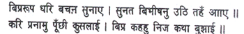 Having thus resolved, he took the form of a Brahman and accosted Vibhishana. As soon as he heard Hanuman’s words, he arose and came to him. Making obeisance, he asked after his well-being and said, ‘Tel me all about yourself, O Brahman.
