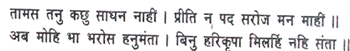My body is tamasic (i.e., under the spell of the mode of ignorance and covered by darkness) and I know no means of realizing God, nor does my heart cherish any devotion to the Lord’s feet; but now, O Hanuman, I am confident that the Lord has been gracious to me, for without Hari’s favour there is no meeting with the saintly.