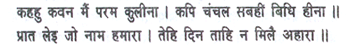 Tell me, what superior birth can I claim, a frivolous monkey, of no merit whatever? Why, anyone who mentions our name in the early morning is sure to go fasting the rest of the day!
