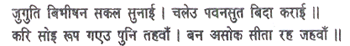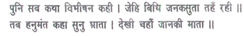 Then Vibhishana gave him a detailed account of the sort of life Janaka’s daughter was living there. Thereupon Hanuman said, ‘Listen, brother, I would fain see my mother, Janaki.’