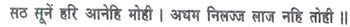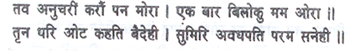 I will make your handmaids, I swear it, if you will look on me but once!’ Interposing a blade of grass between herself and Ravana and fondly fixing her thoughts on her own most loving lord of Avadh, Videha’s daughter replied,