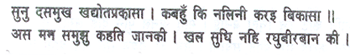 Listen, Ten-headed! Will the lotus ever bloom in the glow of a fire-fly? Ponder this at heart,’ continued Janaka’s daughter; ‘wretch, have you no fear of Raghubira’s arrows?