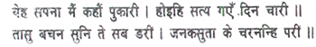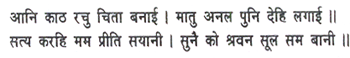 With folded hands she said to Trijata: ‘Mother, you are my only companion in adversity. Speedily devise some plan that I may be rid of this body, for this bereavement, so hard to bear, can no longer be endured. Bring some wood and build a pyre, and then, mother, set fire to it. So prove the genuineness of my love, wise dame. Who could bear to listen to Ravana’s words that pierce the ear like a shaft?