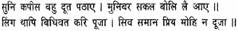 On hearing this, the Monkey King, Sugriva, despatched a number of messengers, who invited an brought together all the great sages, who installed an emblem of Shiva and worshipped it with due solemnity. ‘None is so dear to me as Shiva,’ said the Lord;