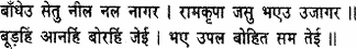 Nala and Nila, clever craftsmen, constructed the bridge and by Rama’s grace their renown spread far and wide. The rocks, which themselves sink and cause ever other things to sink, floated like so many rafts;