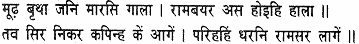 Fool, brag not in vain; if you contend with Rama, such will be your fate; smitten by Rama’s arrows, your many heads will come tumbling on the ground, in front of the monkeys,