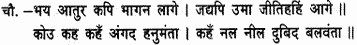 Stricken with terror (continues Shiva) the monkeys began to flee, although, Uma, they would come out victorious in the end. Exclaimed one, ‘Where are Angad and Hanuman? Where are the valiant Nala, Nila and Dvivida?’
