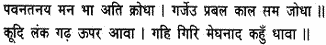 Then the Son of the Wind was seized with fury, and the warrior, formidable as Doom, gave a loud roar. He made a bound and sprang upon the top of Lanka fort, and seizing a rock, rushed at Meghanada.