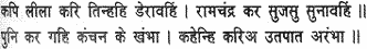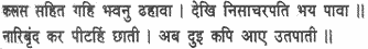 Angad and Hanuman frightened them with their monkey pranks and proclaimed aloud the glory of Ramachandra. Then, grasping the golden columns in their hands, the two champions cried, ‘Let’s now make a start on our ravaging job!’