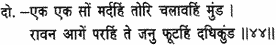 The two heroes crushed their adversaries one against another, and smashing off the victims’ heads, hurled them with such precision that they came tumbling in front of Ravana and burst open like so many pots of curd.