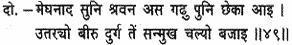 When Meghanada heard that the monkeys had come again and besieged the fort, he gallantly left his stronghold and sallied forth with beat of drum to meet the enemy face to face.