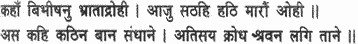 Where is Vibhishana, his brother’s enemy? I shall assuredly slay them all today, and him (Vibhishana) too. So saying, he fitted sharp arrows to his bow and in a transport of rage drew the bow-string to his ear.