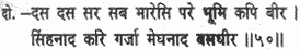 He struck his opponents with ten shafts each, and the monkey warriors fell to the ground. With the roar as of a lion, Meghanada thundered in the pride of his invincible might.
