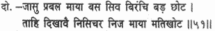 The mean-minded demon displayed his illusory powers before him whose powerful Maya (deluding potency) holds sway over all, both great and small, Shiva and Brahma not excepted.