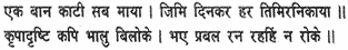 With a single arrow he tore asunder the whole illusion, as when the sun scatters the thick veil of darkness. He cast a gracious glance upon the monkeys and bears and lo! they grew so strong that there was no holding them back from fighting.