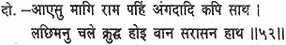 Having obtained Rama’s permission,’ Lakshmana with Angad and the other monkeys, rushed forth wrathfully, bow and arrows in hand.
