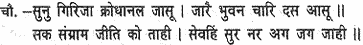 Listen, Girija, said Shiva; who can conquer him in battle, the fire of whose wrath would consume in a moment all the fourteen spheres, whom gods and men and all beings, moving and unmoving, adore?