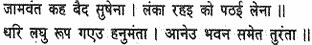 Jambavan said, ‘Sushena the physician lives in Lanka; who will be sent to fetch him here?’ Assuming a tiny (indiscernible) form, Hanuman straightway went and brought him, house and all.