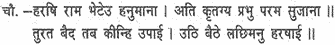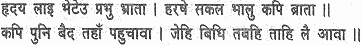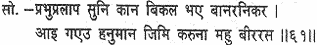 The monkey hosts were sore distressed on hearing Rama’s frantic wailing. Then arrived Hanuman like a heroic strain in the midst of a pathetic theme.